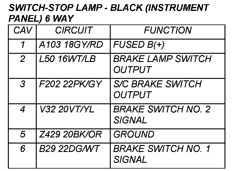 Switch - Stop Lamp - Black (Instrument Panel) 6 Way (Part 1):