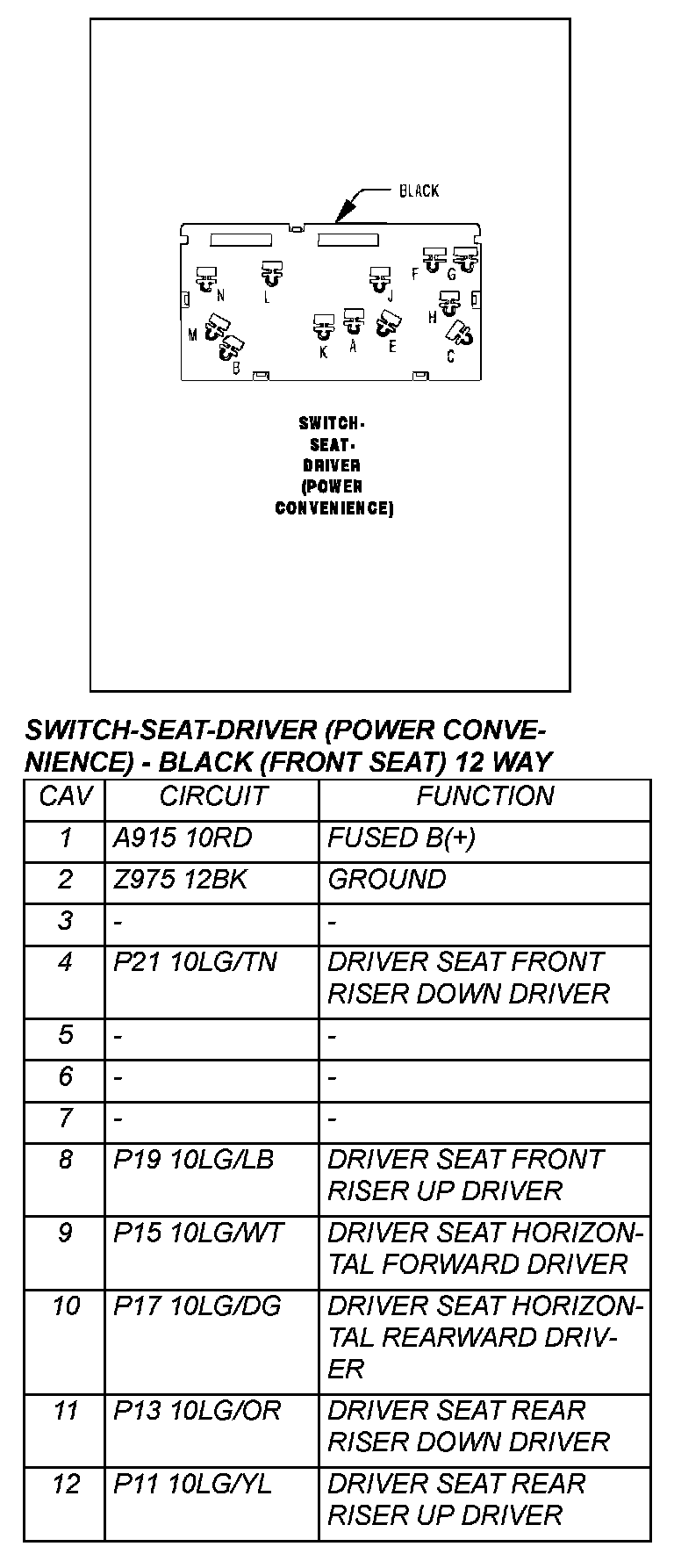 Switch - Seat - Driver (Power Convenience) - Black (Front Seat) 12 Way: