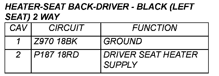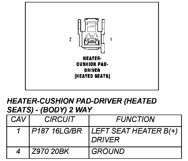 Heater - Cushion Pad - Driver (Heated Seats) - (Body) 2 Way: