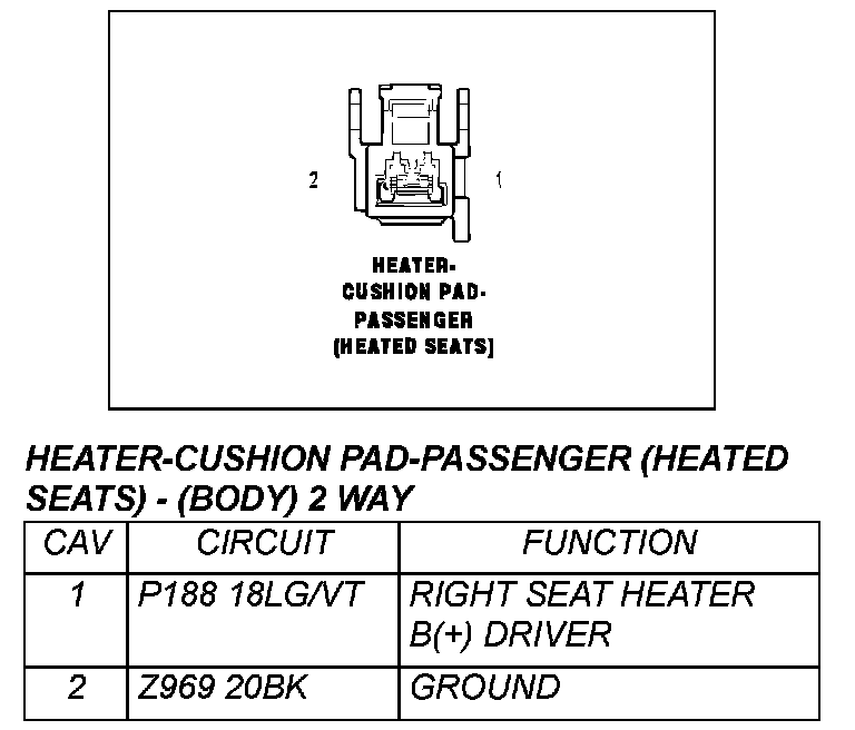 Heater - Cushion Pad - Passenger (Heated Seats) - (Body) 2 Way: