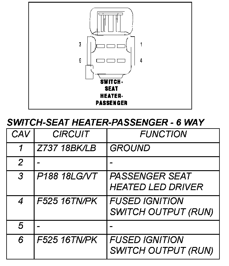 Switch - Seat Heater - Passenger - 6 Way: