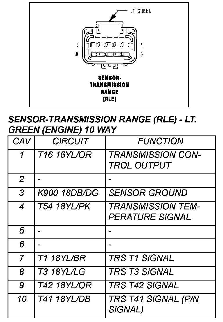 Sensor - Transmission Range (RLE) - LT. Green (Engine) 10 Way: