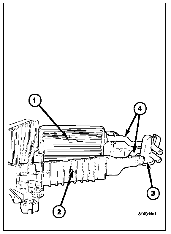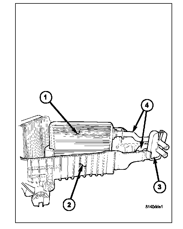 1. If removed, install the rubber flange (3) over the heater core tubes (4).
