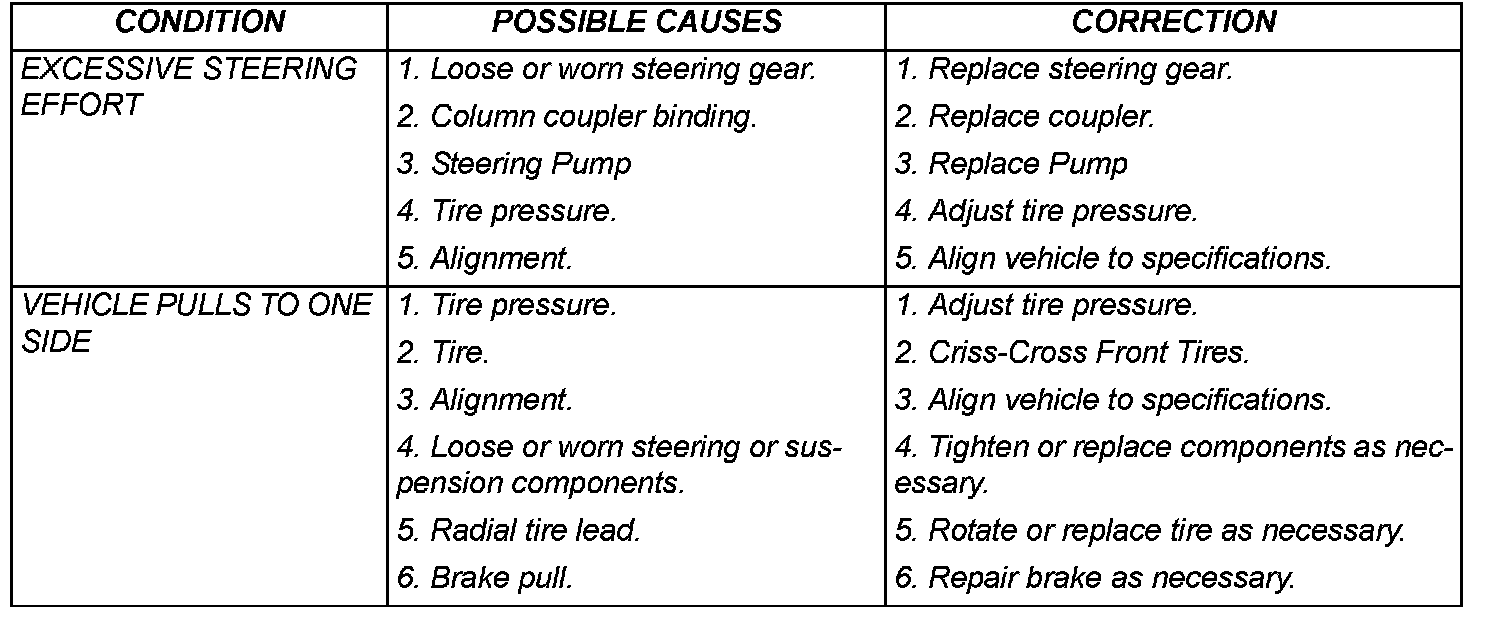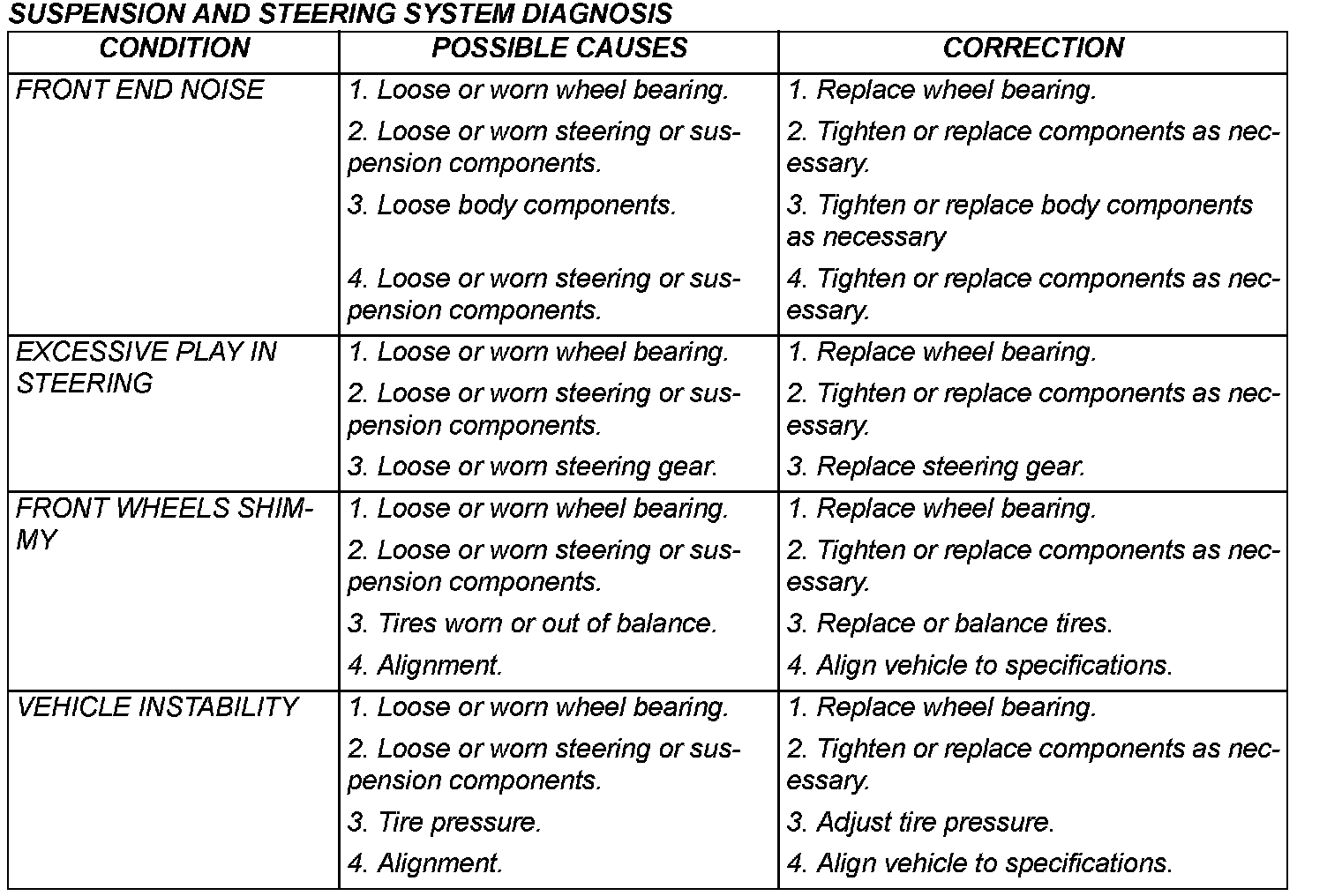 Refer to Suspension and Steering System Diagnosis Chart for additional information.