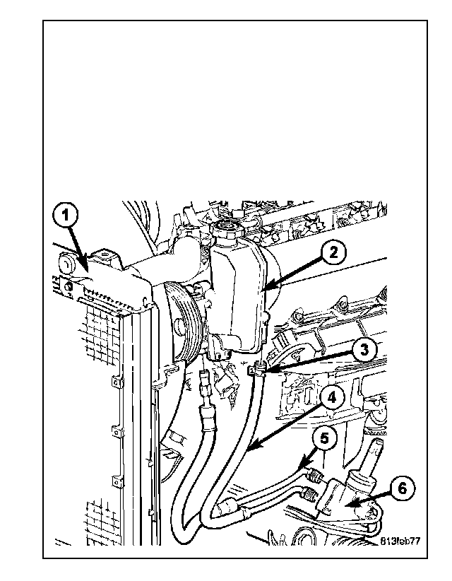 2. Reconnect the return hose (6) at the cooler (1) with hose clamps.