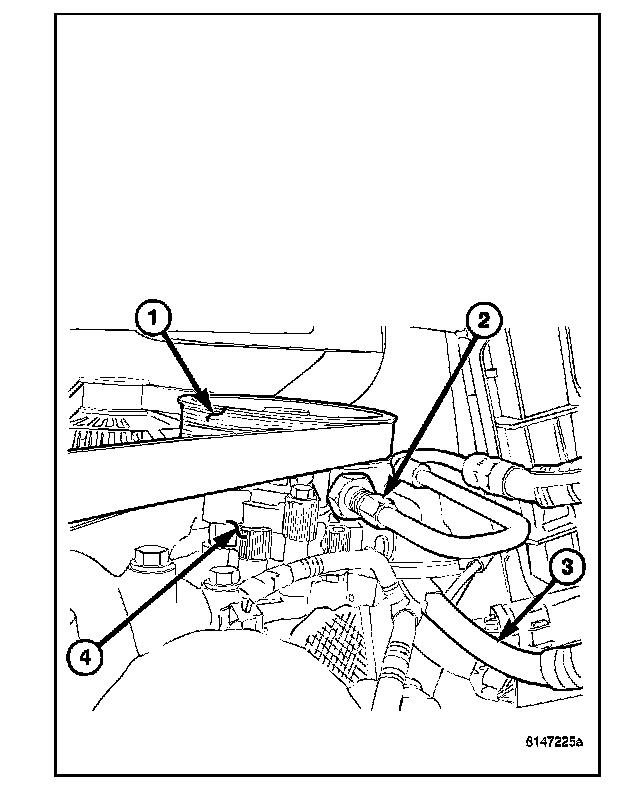 2. Reconnect the return hose (4) at the cooler (1).