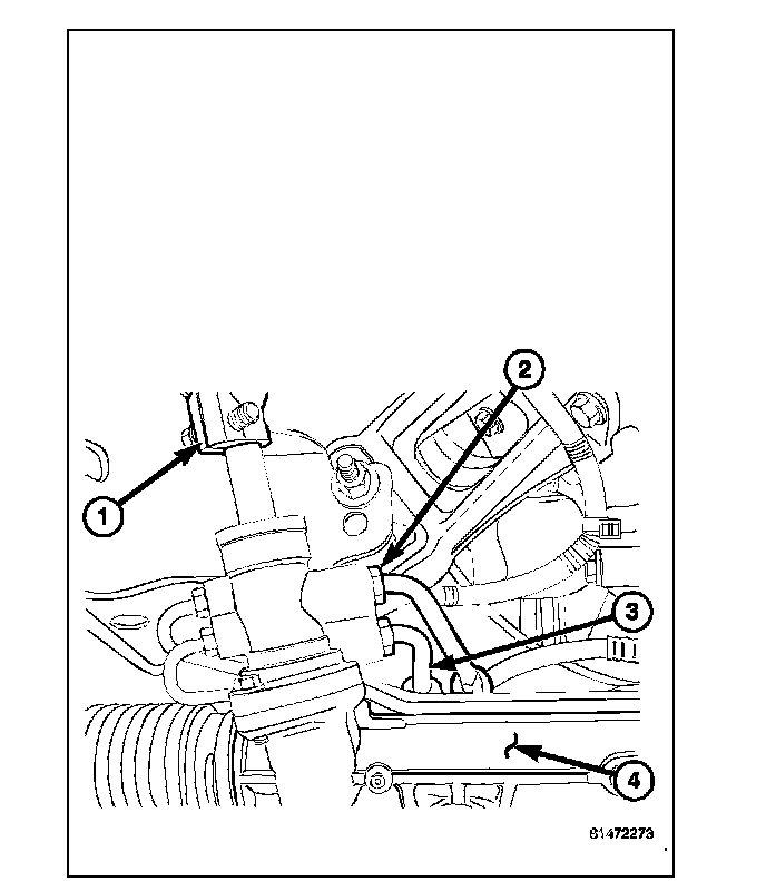 4. Reconnect the pressure hose (2) at the pump (4). Tighten the tube nut to 31 Nm (23 ft. lbs.).