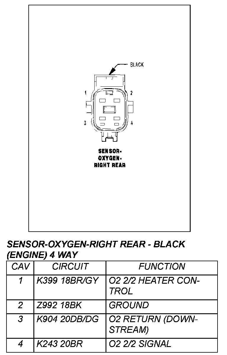 Sensor - Oxygen - Right Rear - Black (engine) 4 Way: