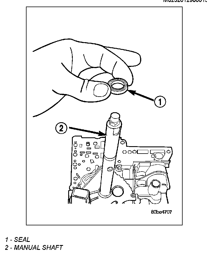 2. Remove the manual shaft seal (1).