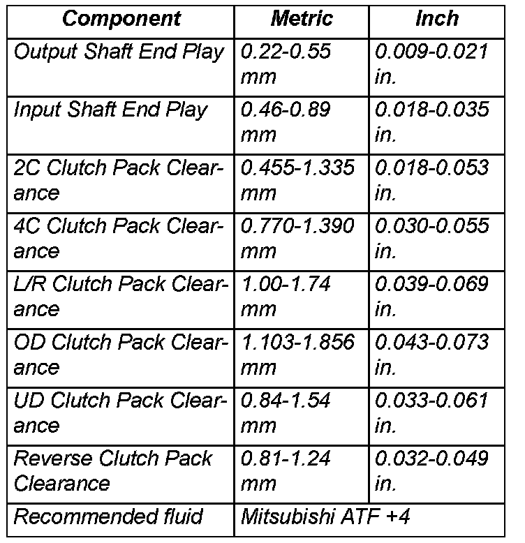 TRANSMISSION - SPECIFICATIONS