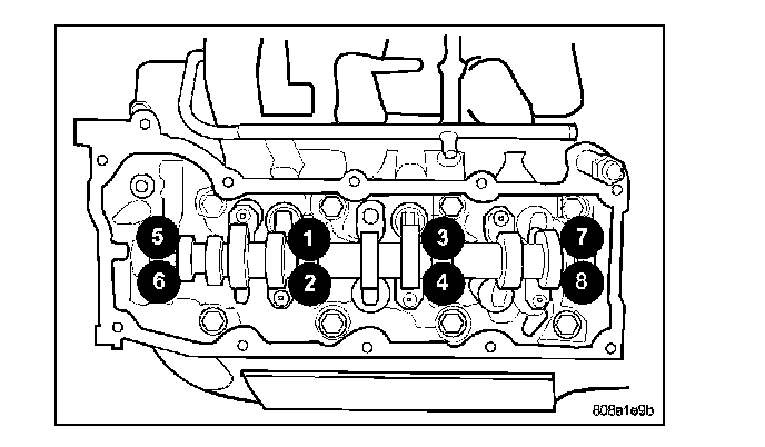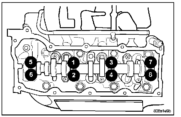 Torque the camshaft bearing cap retaining bolts 11 Nm (100 in. lbs.).