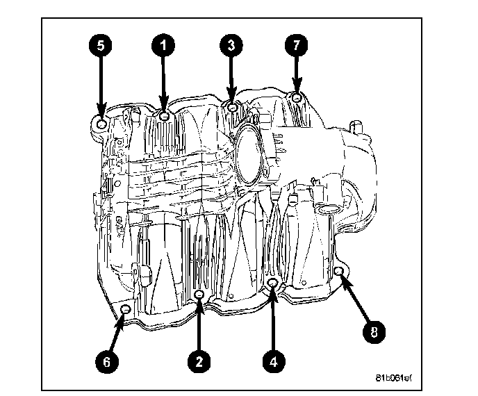 ^ Step 1: Tighten bolts 1-8, 27 Nm (20 ft. lbs.).