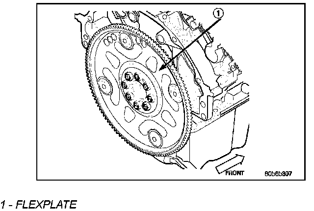 Tighten the flexplate retaining bolts to 95 Nm (70 ft. lbs.) in the sequence shown.