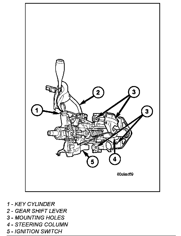 The tilt and standard column (4) have been designed to be serviced as an assembly; without wiring, switches, shrouds, steering wheel, etc. Most steering column components can be serviced without removing the steering column from the vehicle. Safety goggles should be worn at all times when working on steering columns.