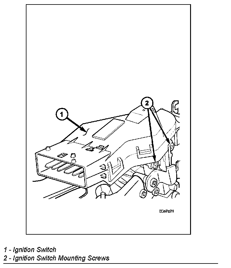 The ignition key must be in the key cylinder for cylinder removal. The key cylinder must be removed first before removing ignition switch.