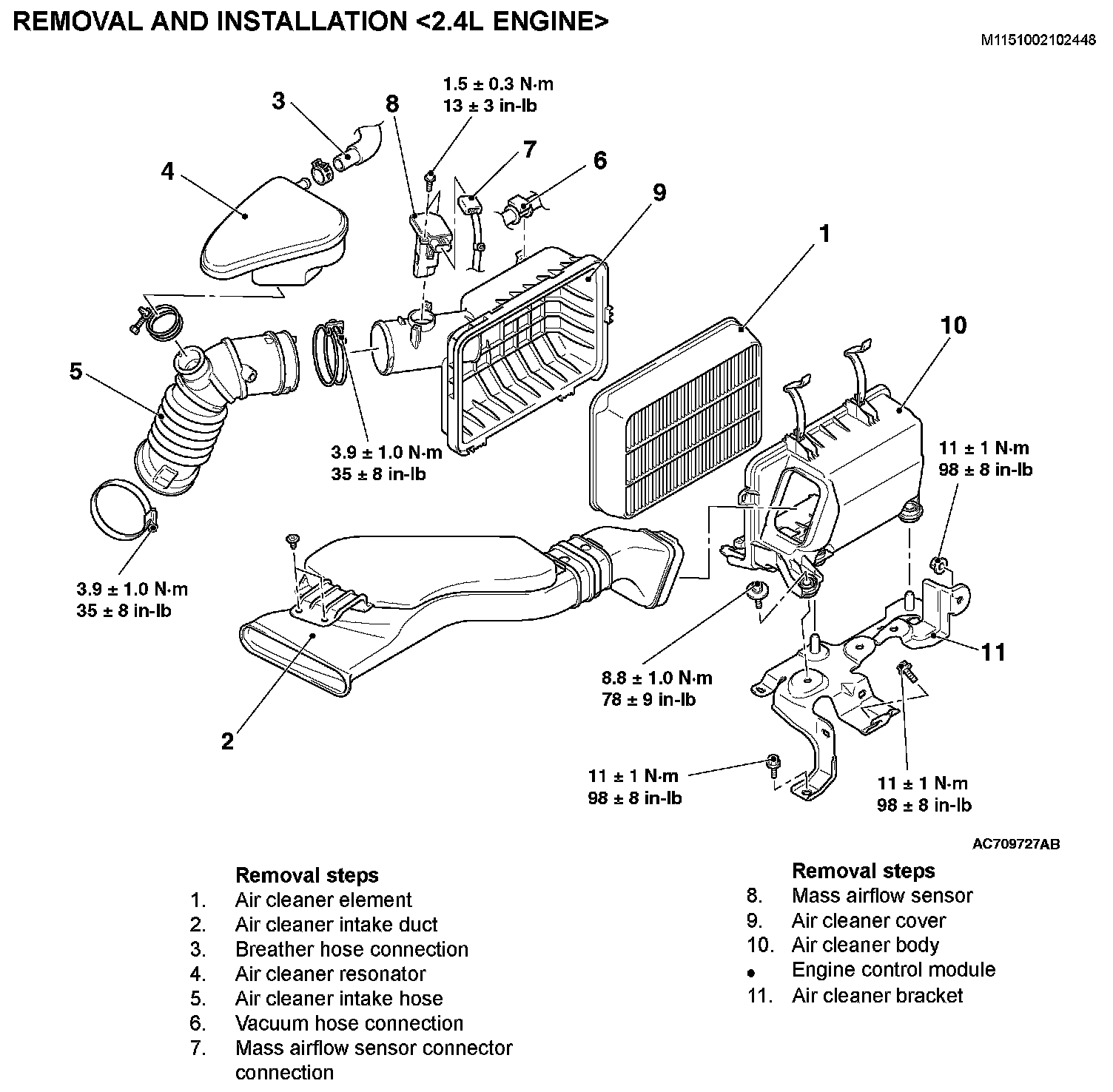 REMOVAL AND INSTALLATION [2.4L ENGINE]