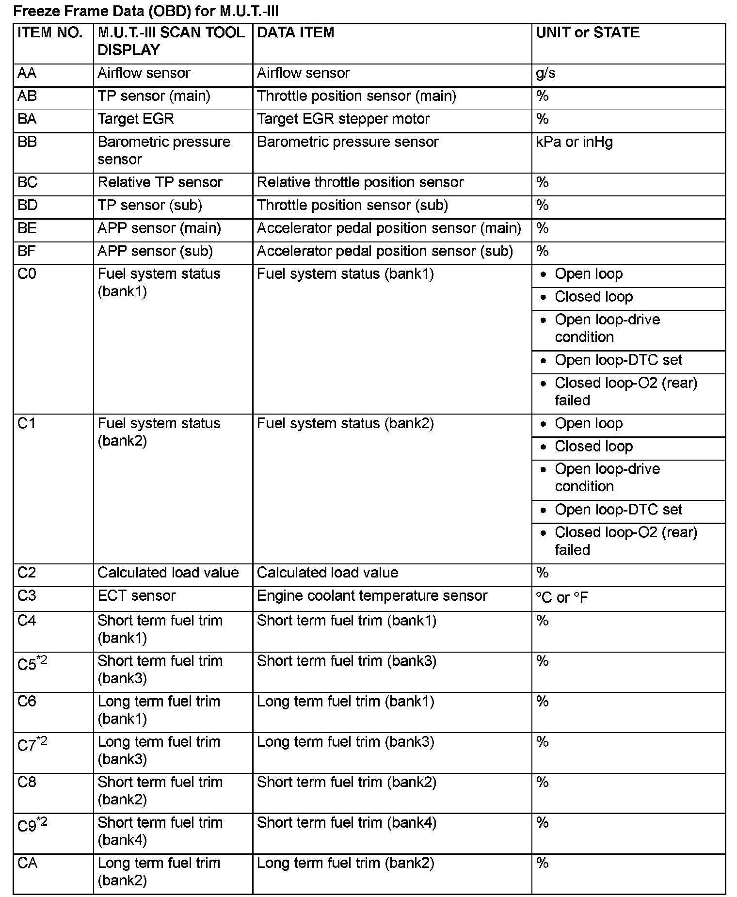 Freeze Frame Data (OBD) For M.U.T.-III