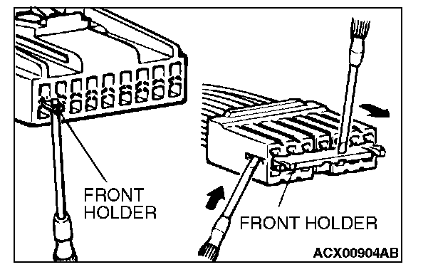 1. Insert a screwdriver [1.4 mm (0.06 inch) width] as shown in the figure, disengage the front holder, and remove it.