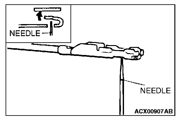 4. Insert a needle through the hole provided on the terminal and raise the contact point. Lightly squeeze the outer edge so the flats are parallel with the bottom.