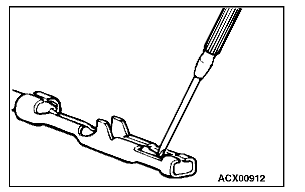 3. Press the contact point to the male terminal down by holding a screwdriver [1.4 mm (0.06 inch) width] as shown in the figure.