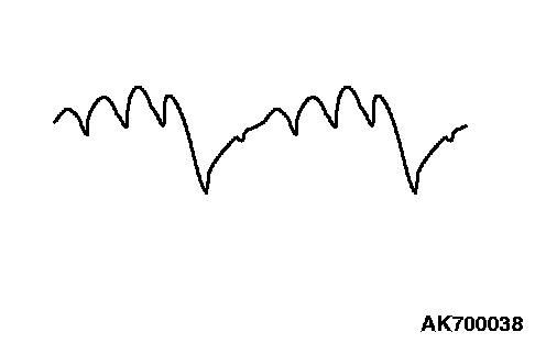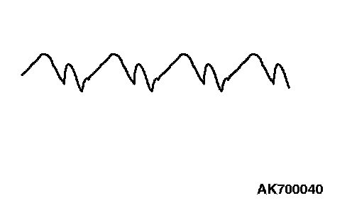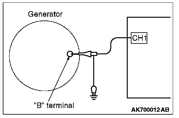 NOTE: Identification of abnormal waveforms is easier when there is a large output current (regulator is not operating). (Waveforms can be observed when the headlights are illuminated.)