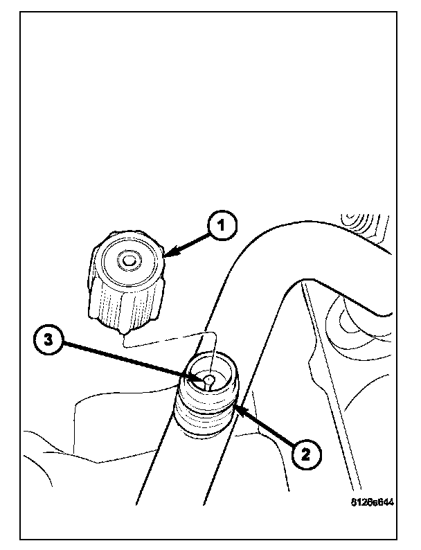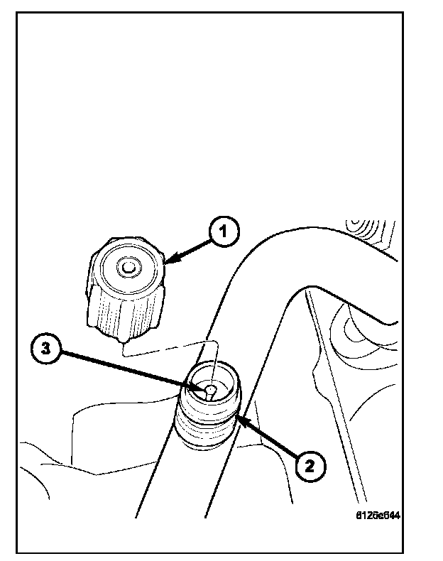 3. Using a Schrader-type valve core tool, remove the valve core (3) from the service port.