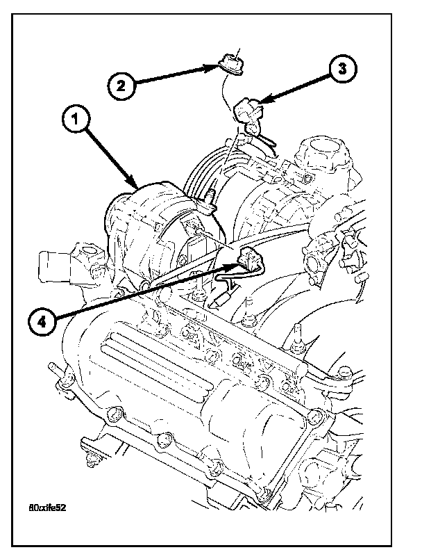 5. Disconnect field wire connector (4) at rear of generator by pushing on connector tab.