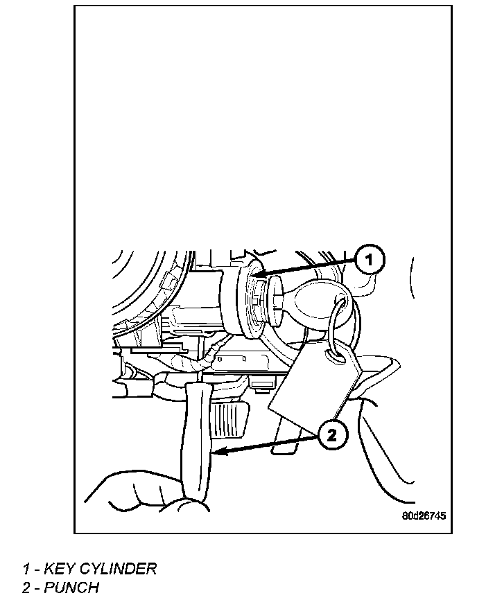 The ignition key (1) Must be In the key Cylinder (2) for cylinder installation.