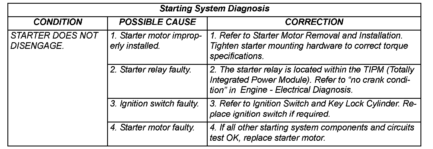 - Starter Relay - Refer to Starter Relay The starter relay is located within the TIPM (Totally Integrated Power Module). Refer to "no crank condition" in Engine - Electrical Diagnosis.