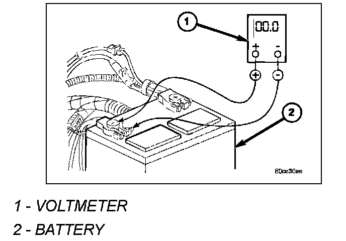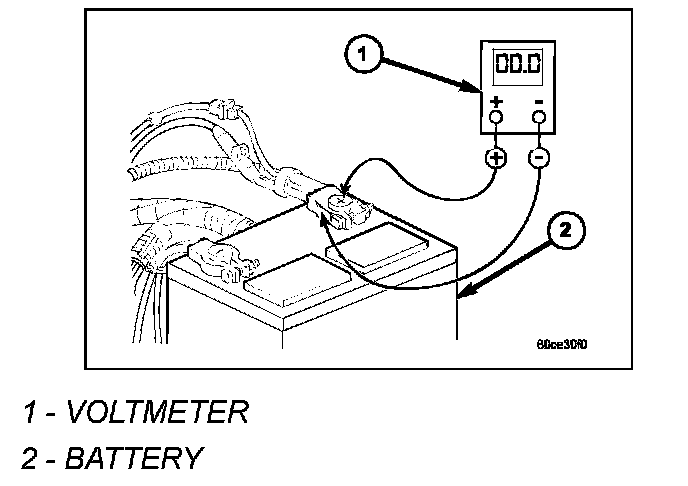 1. Connect volt-ampere tester (1) and (2) to battery terminals. See instructions provided by manufacturer of volt-ampere tester being used.