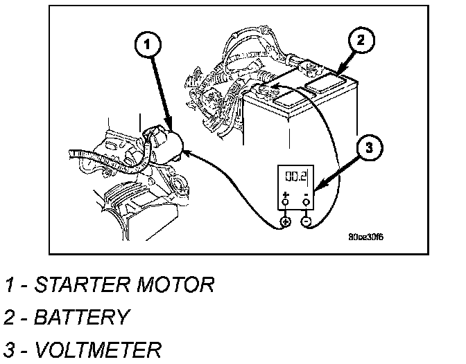 1. If voltage reads below 9.6 volts, refer to Starter Motor in Diagnosis and Testing. If starter motor is OK, refer to Engine Diagnosis in Engine for further testing of engine. If starter motor is not OK, replace faulty starter motor.