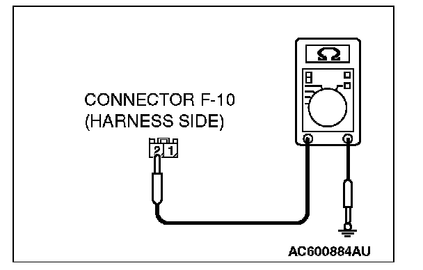 STEP 3. Check the ground circuit to the liftgate opener switch. Measure the resistance at liftgate opener switch connector F-10.