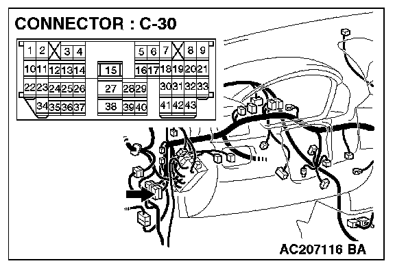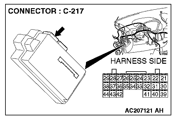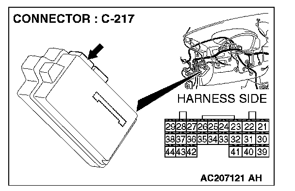 STEP 5. Check ETACS-ECU connector C-217 for loose, corroded or damaged terminals, or terminals pushed back in the connector.