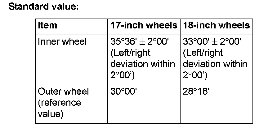 2. Place the front wheel on a turning radius gauge and measure the steering angle.