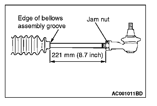 3. If not within the standard value, adjust the tie-rods (right and left), and repeat Steps 1 and 2.