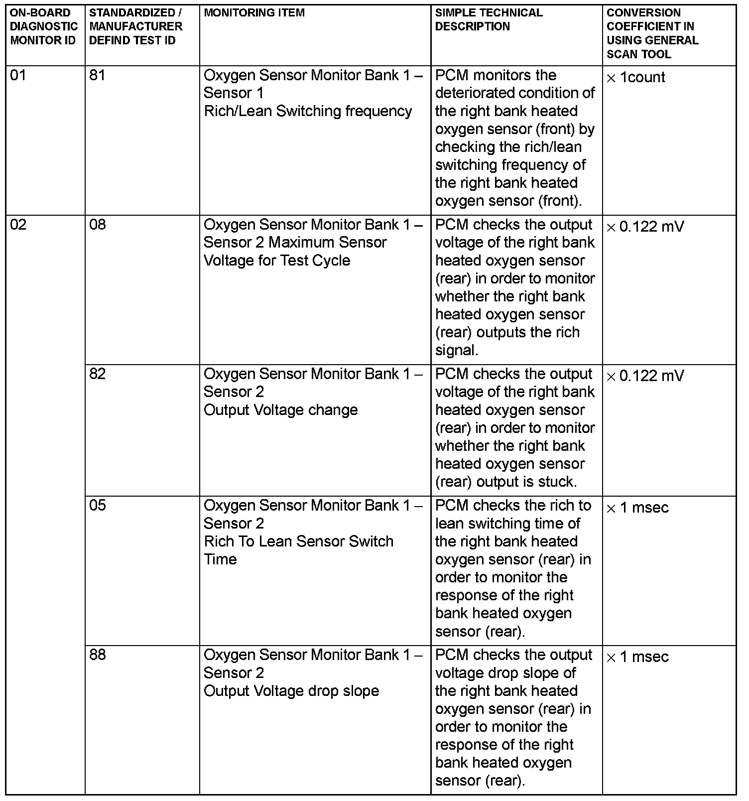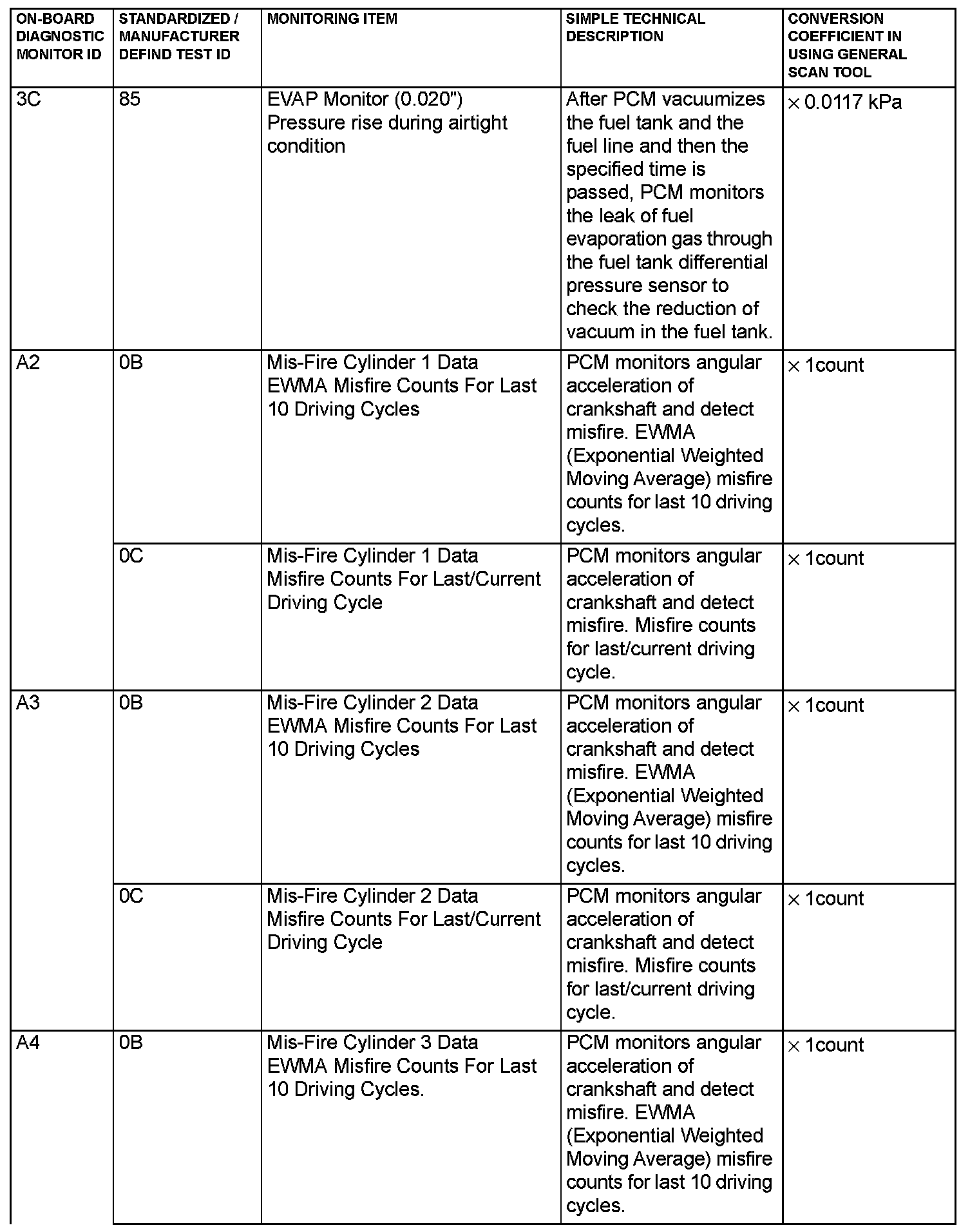 - When not finishing the monitor of the driving cycle for the request of On-Board Monitoring Test Request, the PCM outputs the stored latest monitor test result.