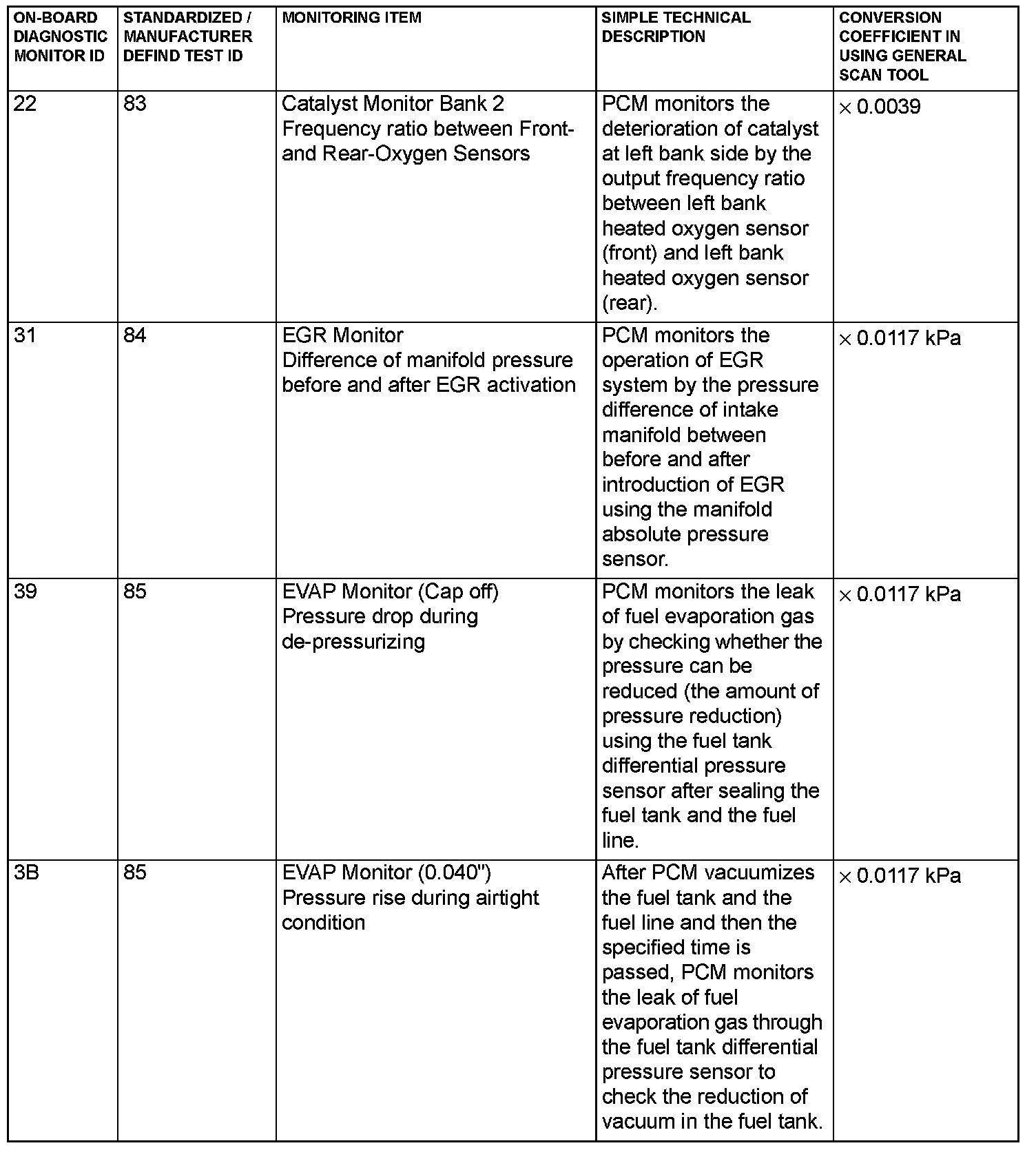 MODE 6 REFERENCE TABLEThe powertrain control module (PCM) monitors the condition of emission control system.