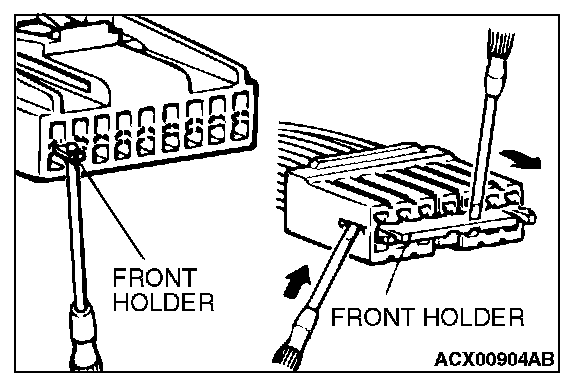 1. Insert a screwdriver [1.4 mm (0.06 inch) width] as shown in the figure, disengage the front holder, and remove it.