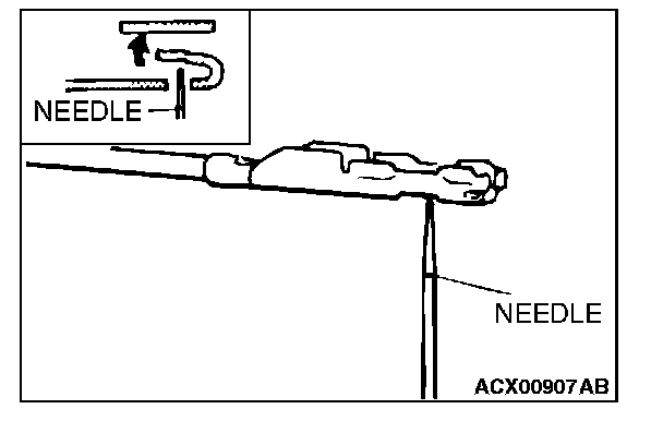 4. Insert a needle through the hole provided on the terminal and raise the contact point. Lightly squeeze the outer edge so the flats are parallel with the bottom.
