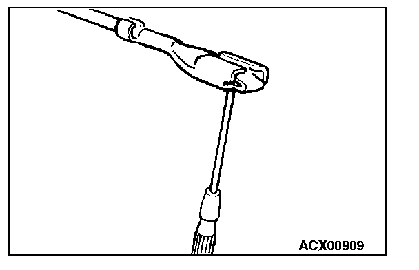 3. Press the contact point to the male terminal down by holding a screwdriver [1.4 mm (0.06 inch) width] as shown in the figure.