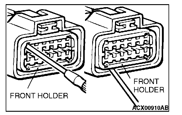 2. Push the harness wire of the terminal to be repaired deep into the connector from the harness side and hold it there.