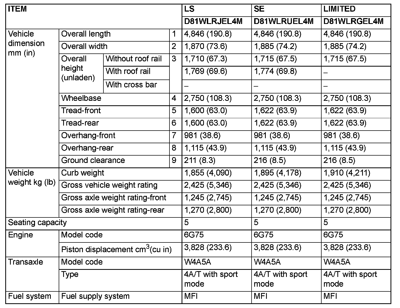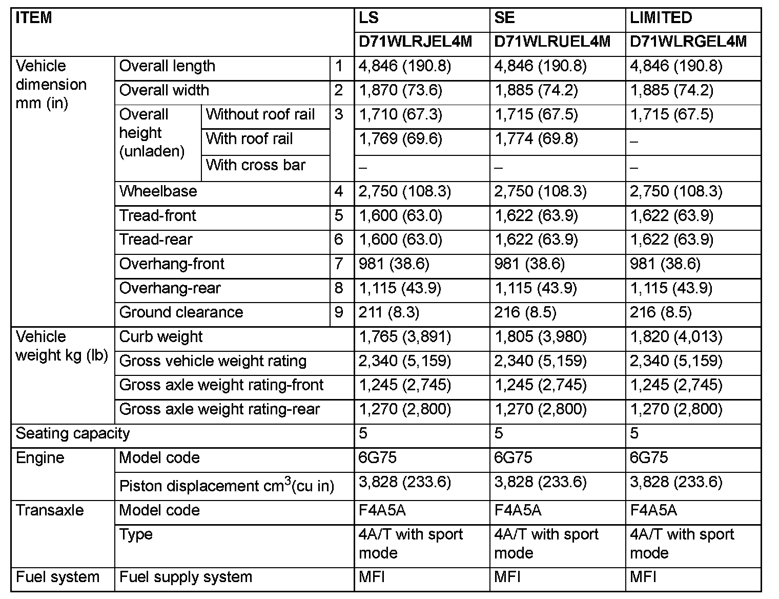 Endeavor 2WD V6-3.8L (6G75)