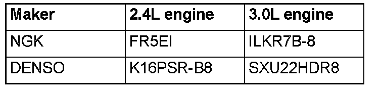Iridium plugs are used. Use care not to damage the iridium tips of the plugs. Do not adjust the spark plug gap.