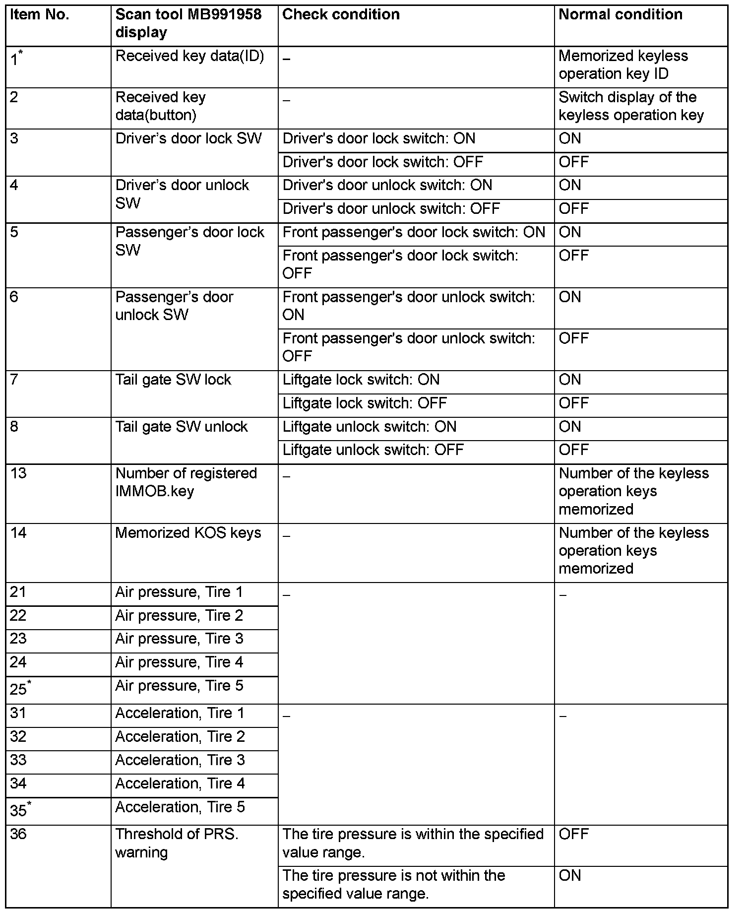 Data List Reference Table (Part 1):