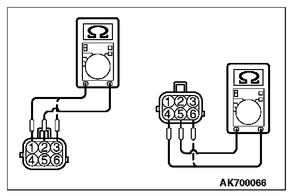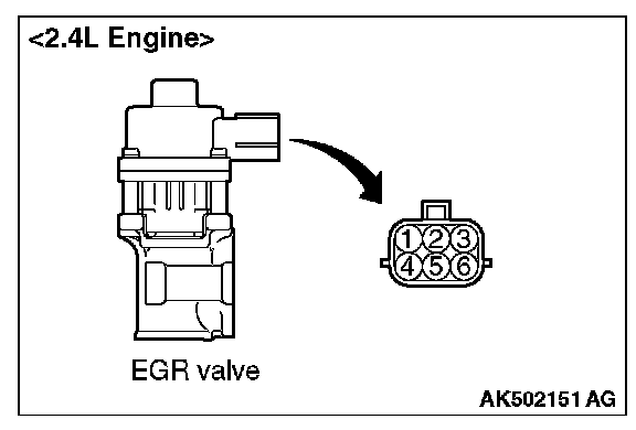 4. Measure the resistance between terminal No. 5 and either terminal No. 6 or terminal No. 4 of the connector at the EGR valve.