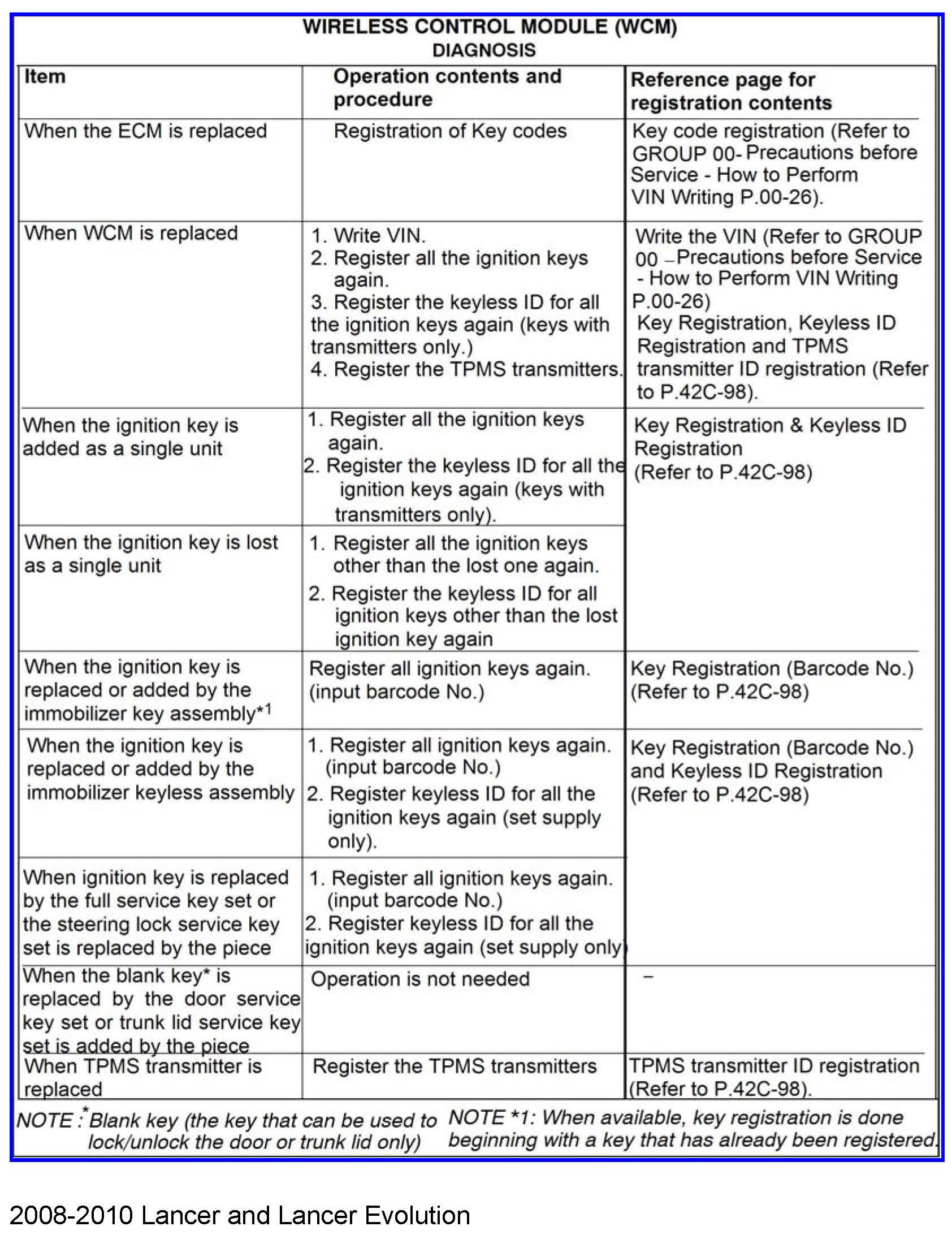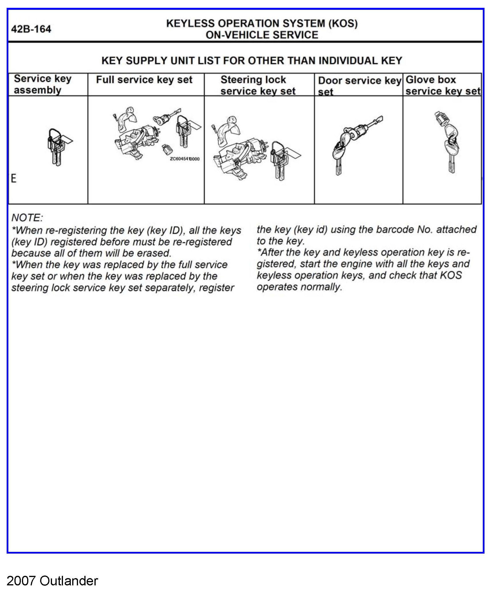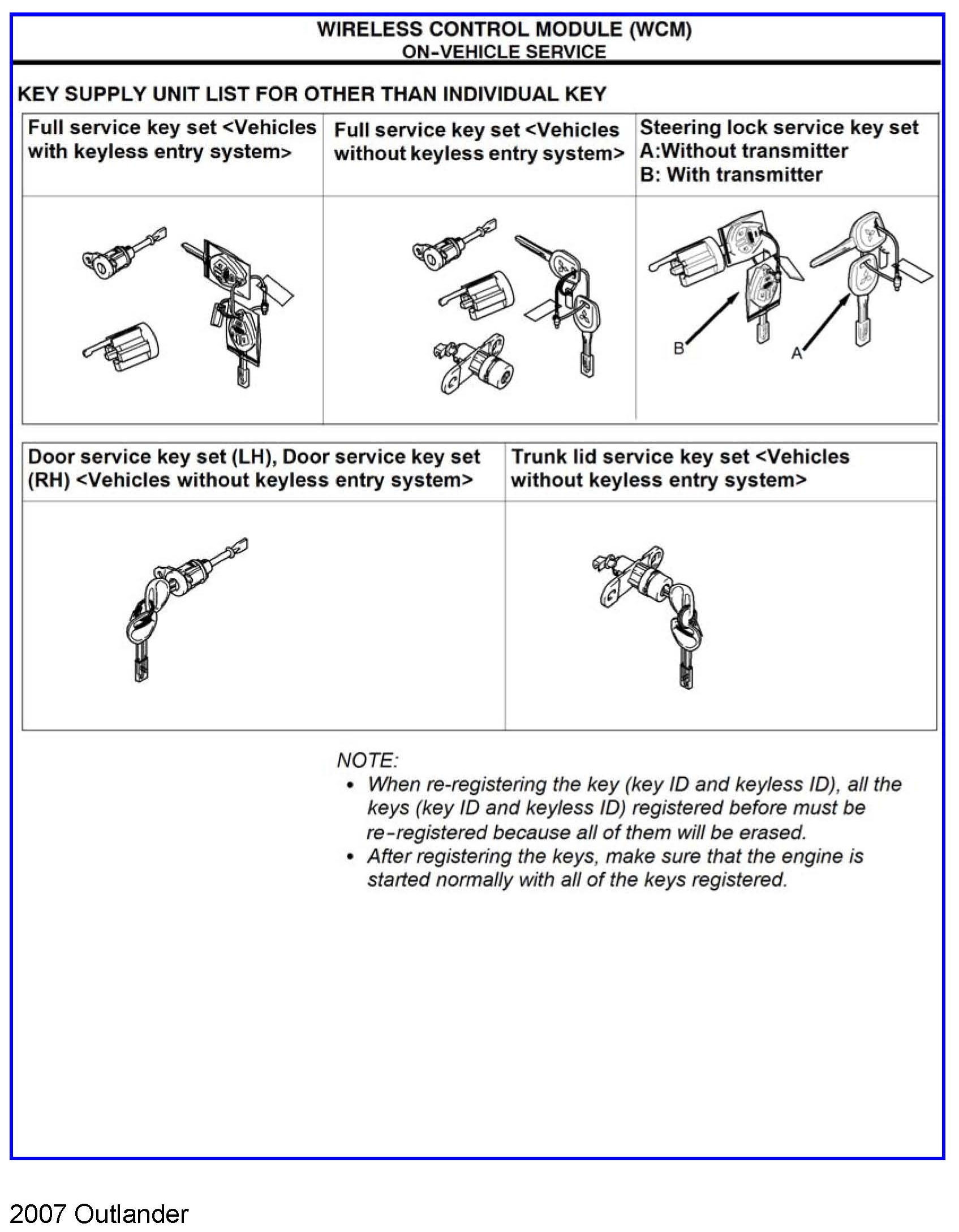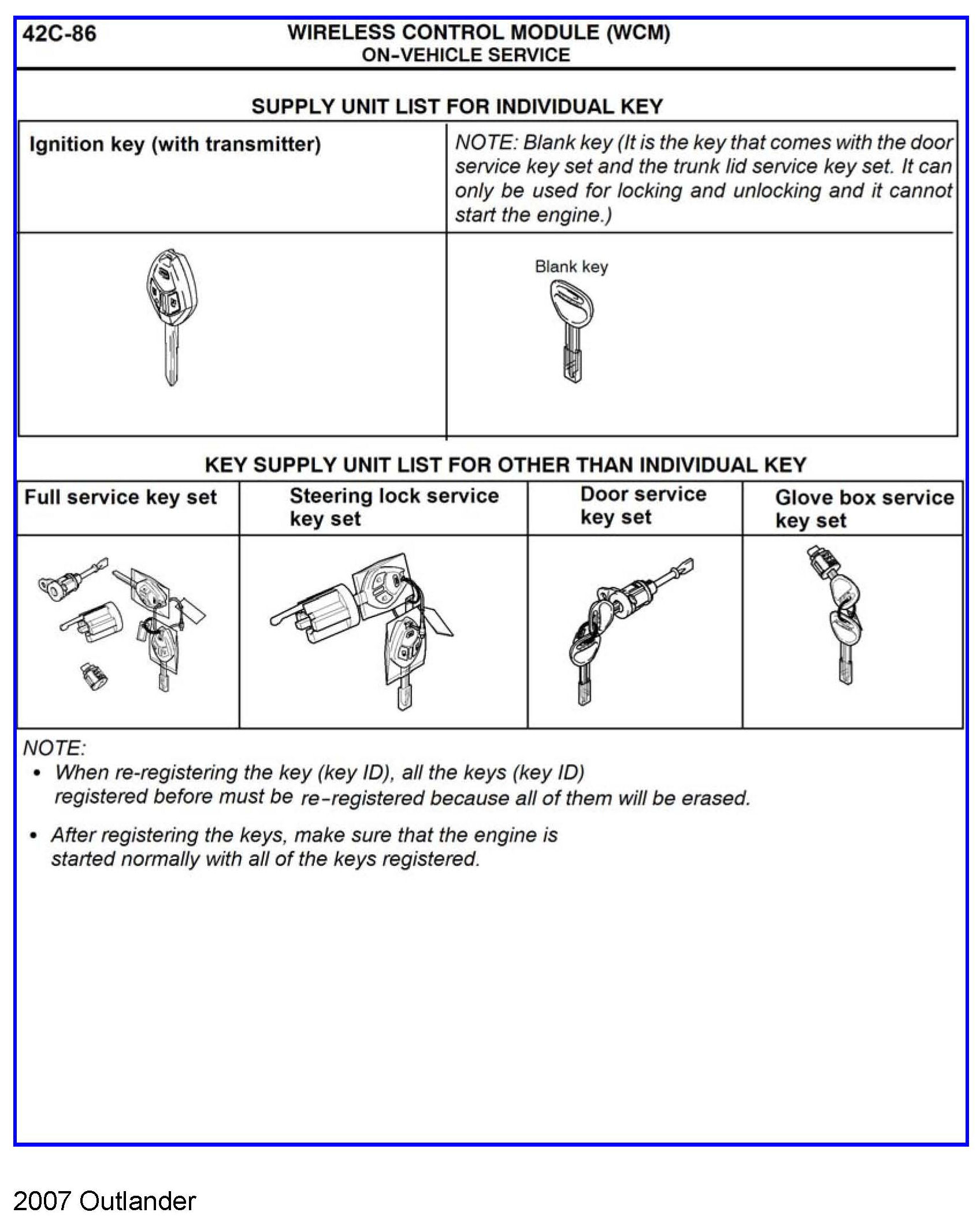 Some ID Code Registration information for the KOS (Keyless Operating System), WCM (Wireless Control Module) and Immobilizer systems is incorrect in the affected service manuals. This bulletin contains corrected information and replaces the affected service manual pages listed below.