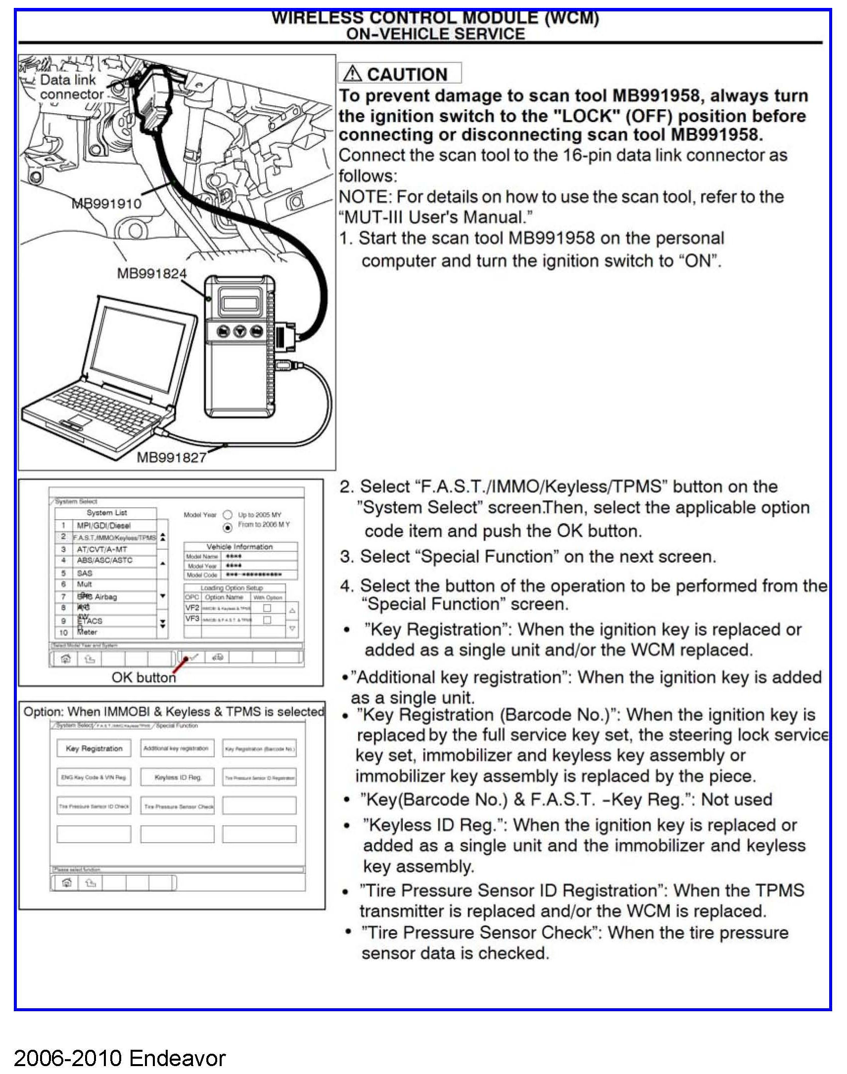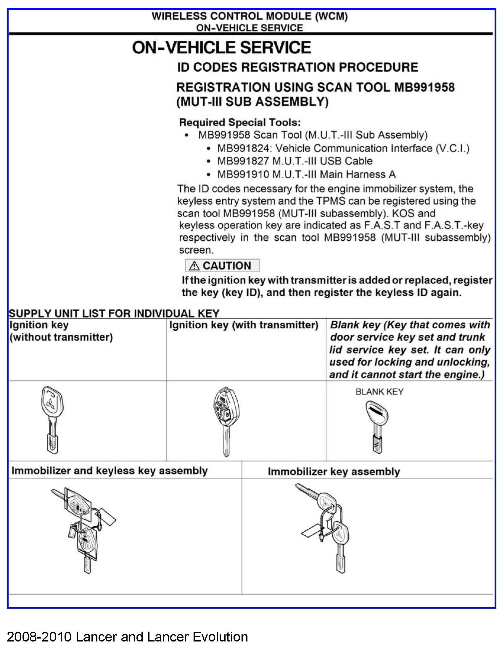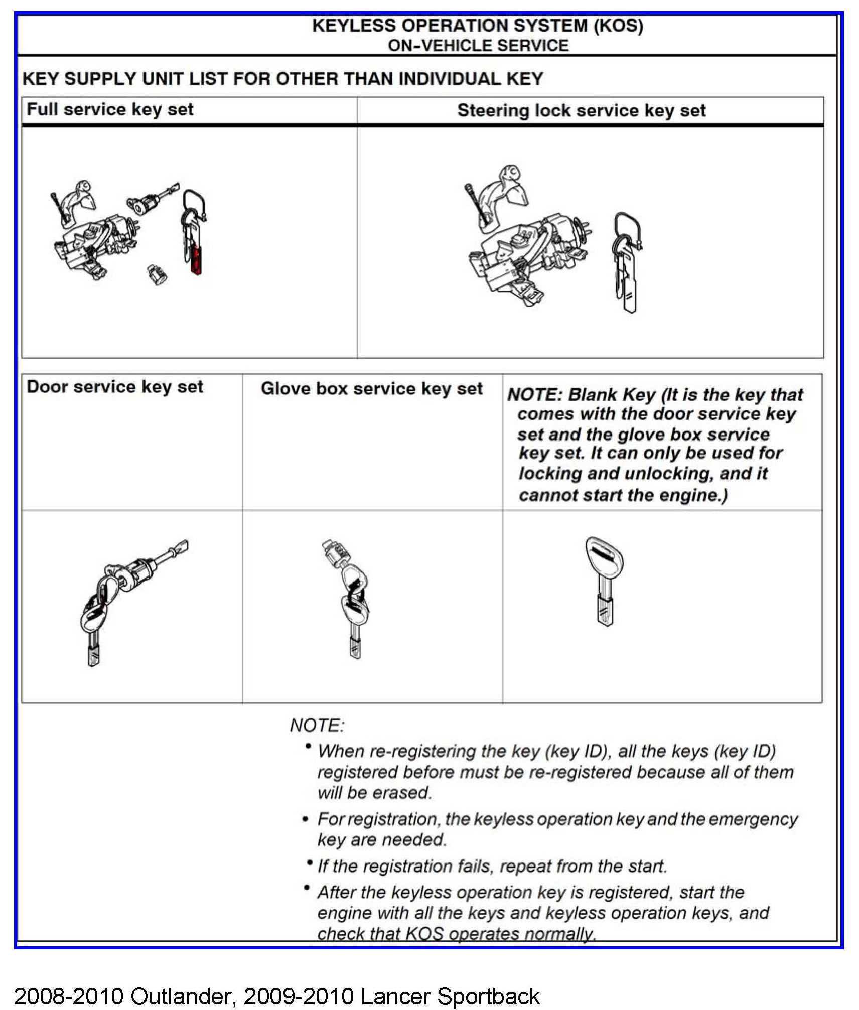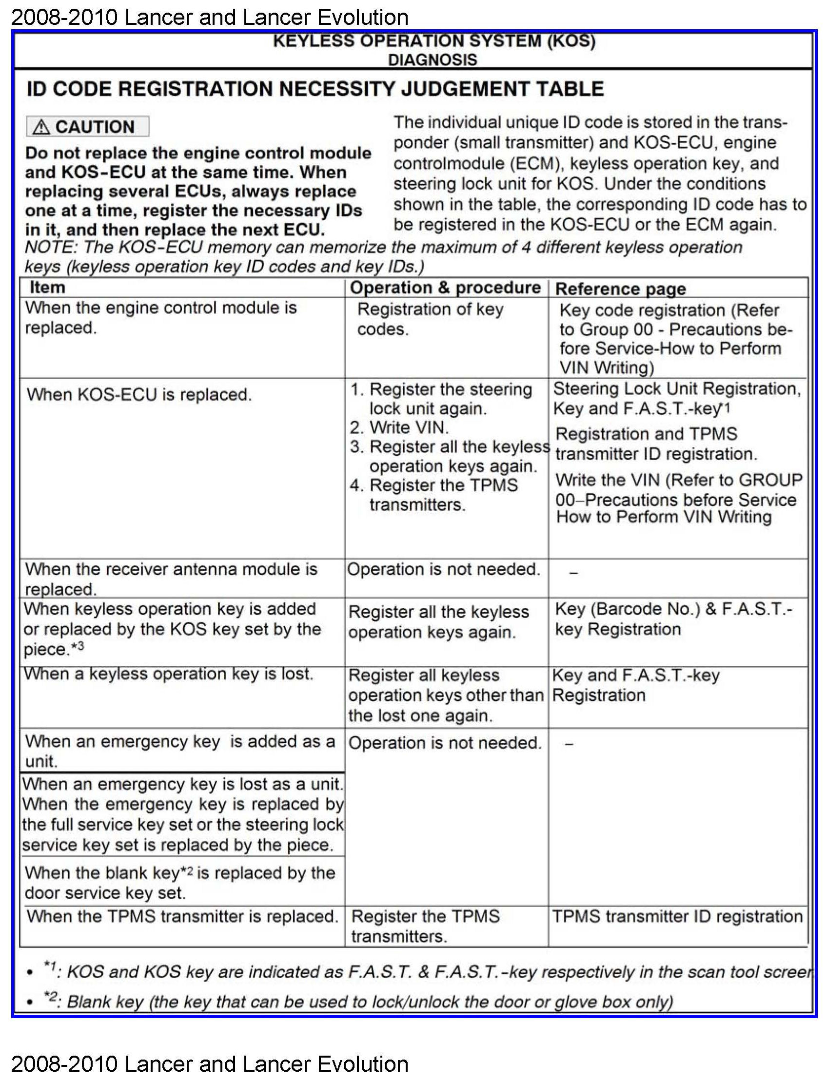 Some ID Code Registration information for the KOS (Keyless Operating System), WCM (Wireless Control Module) and Immobilizer systems is incorrect in the affected service manuals. This bulletin contains corrected information and replaces the affected service manual pages listed below.