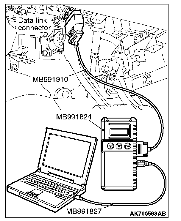 1. Connect scan tool MB991958 to the data link connector.