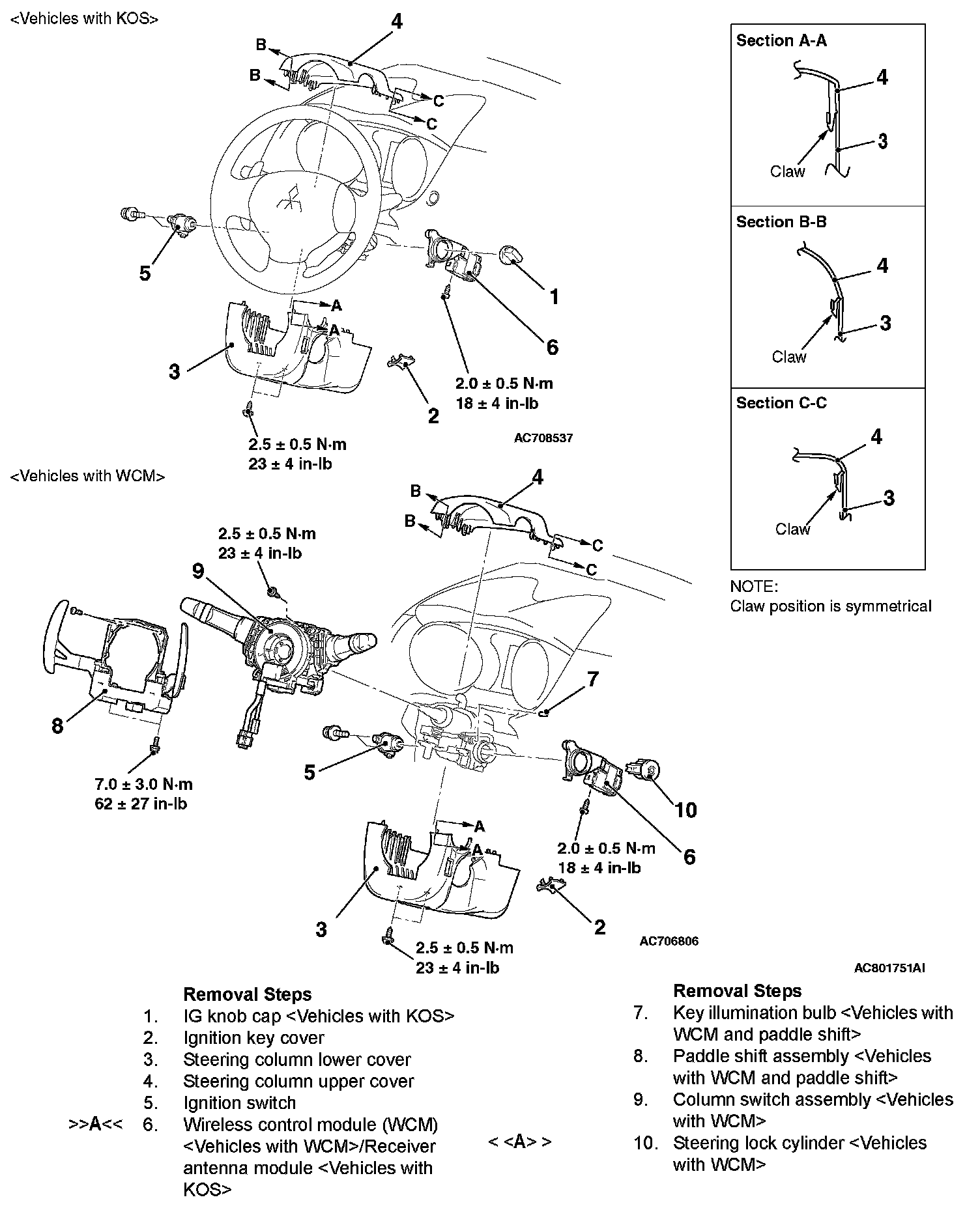 [[A]] STEERING LOCK CYLINDER REMOVAL [VEHICLES WITH WCM]