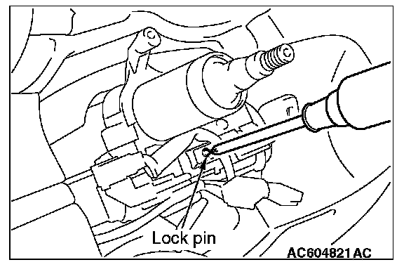 2. With using a cross-headed screw driver (small) or similar items to press in the lock pin, remove the ignition key, and then remove the steering lock cylinder.